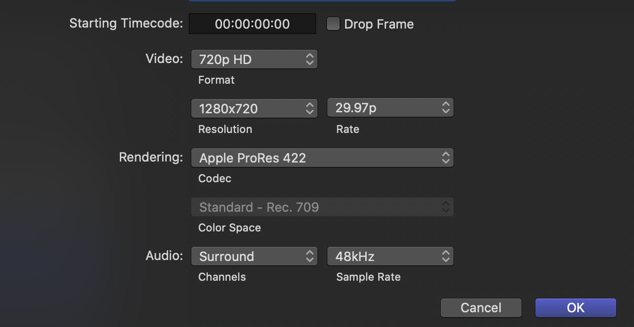 Create a surround project in Final Cut Pro. This is where we’re going to put everything together.